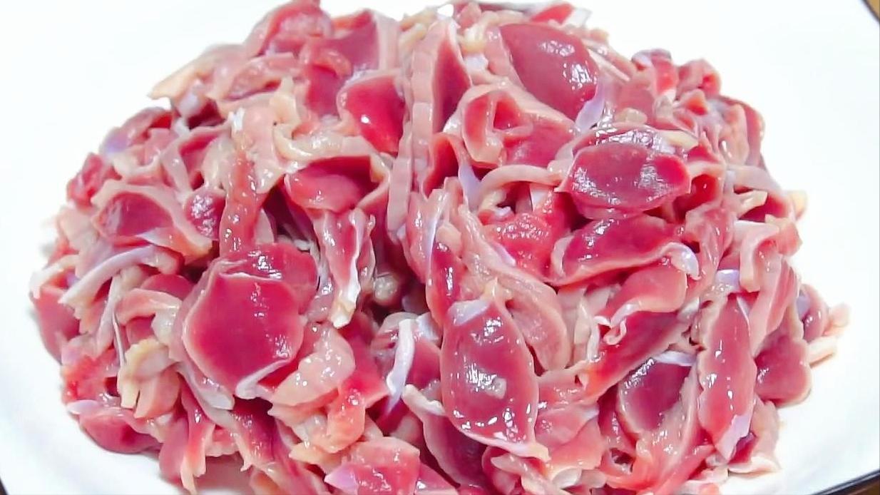 2、雞胗半斤,洗乾淨後切薄片。