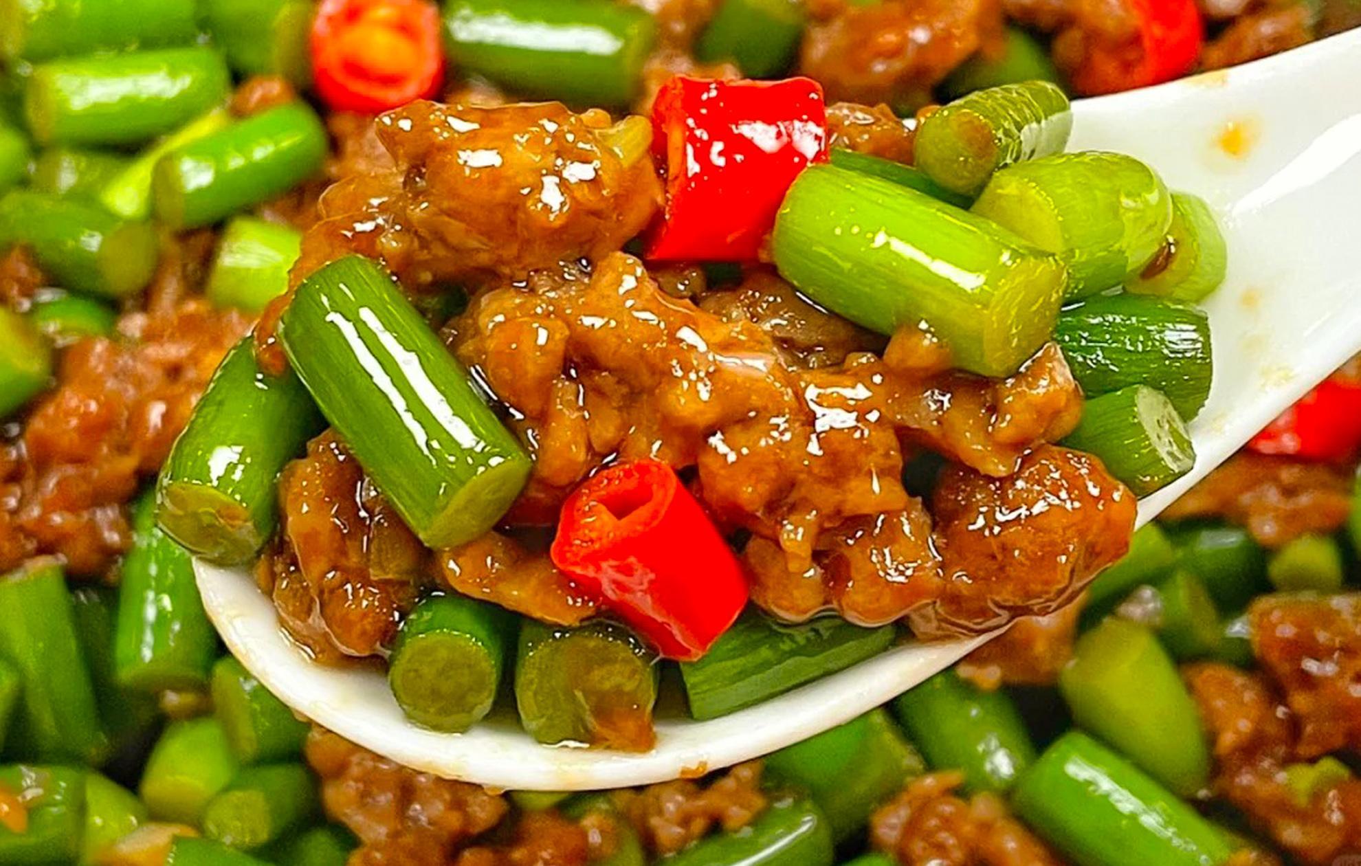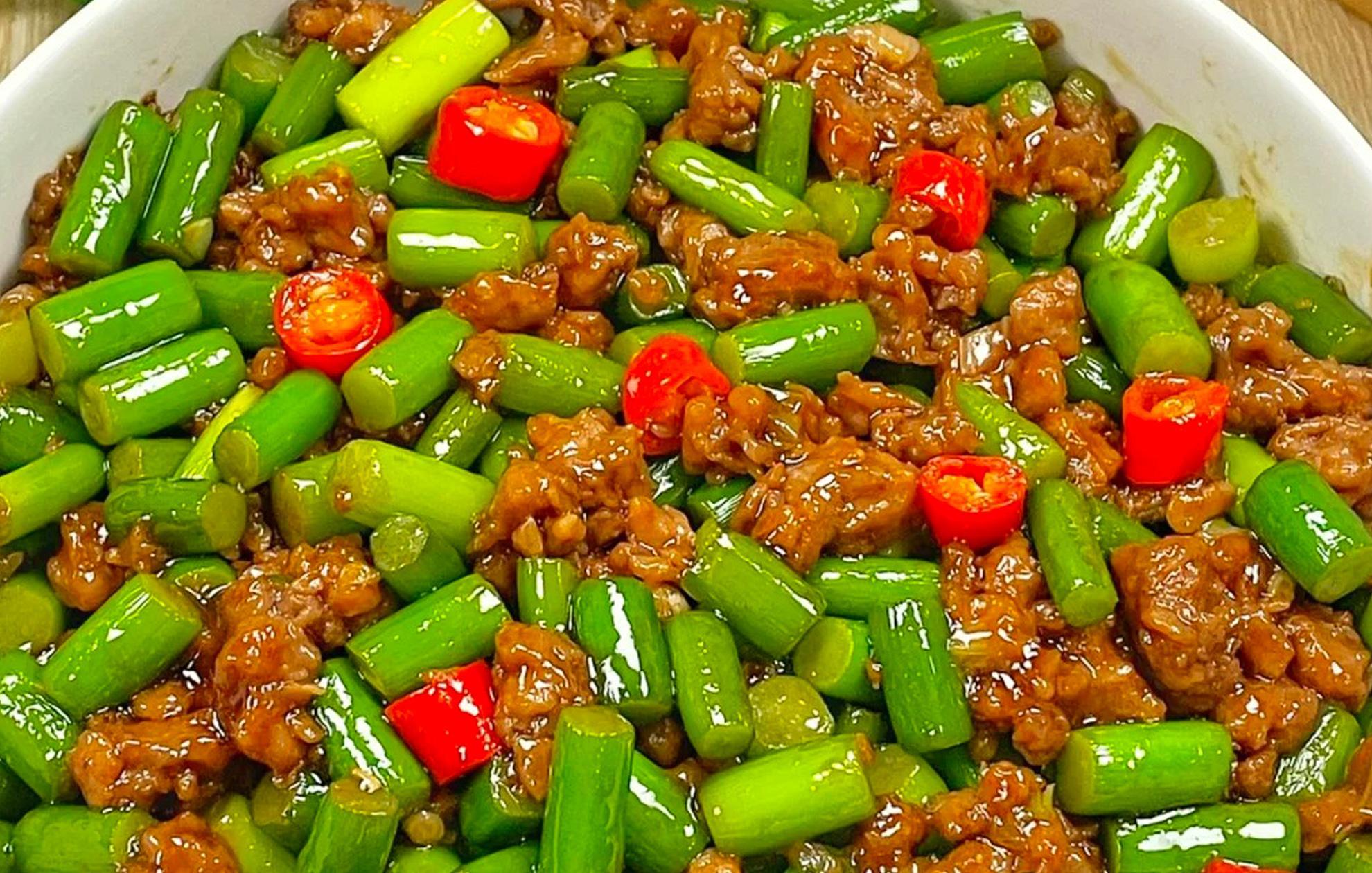 【蒜薹炒肉沫】