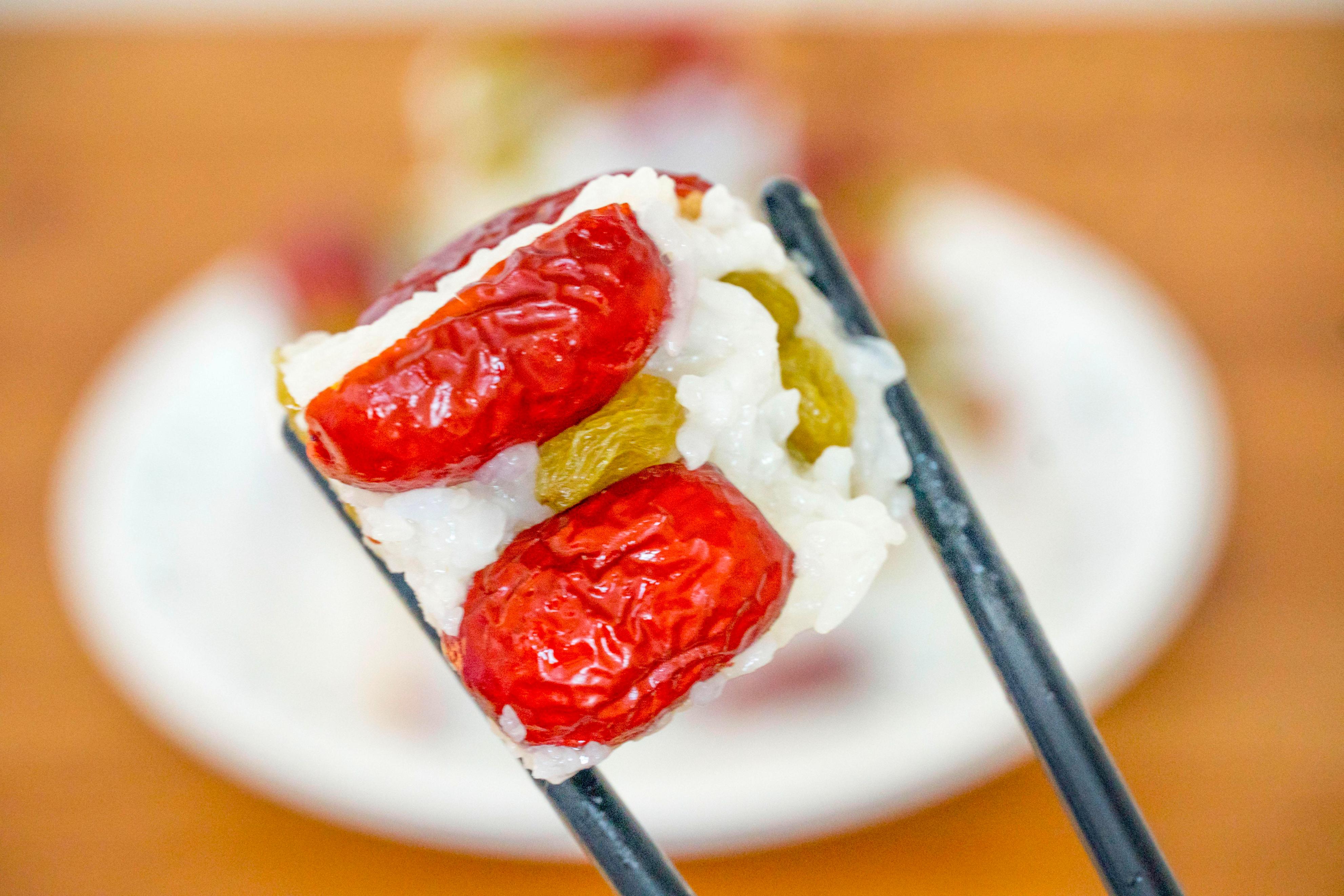 3、這時候我們將紅棗洗淨 ,切開去核 並分成兩半,葡萄乾也清洗一下表面的灰塵。