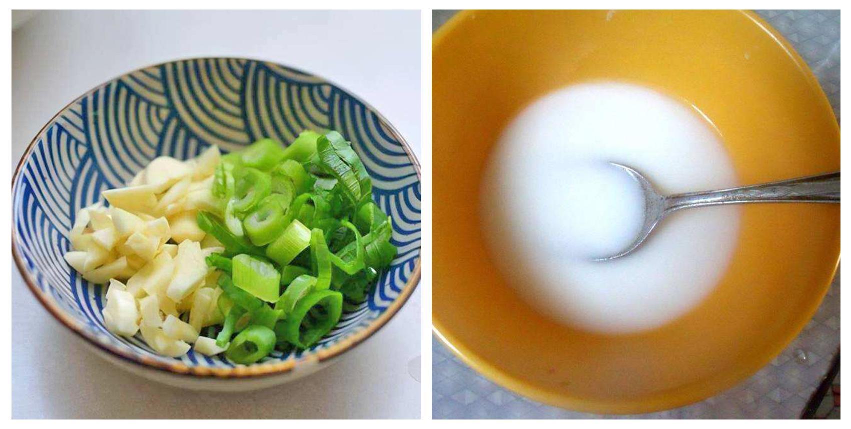 1、蔥花、蒜末,醬油、蠔油、一小碗水澱粉;