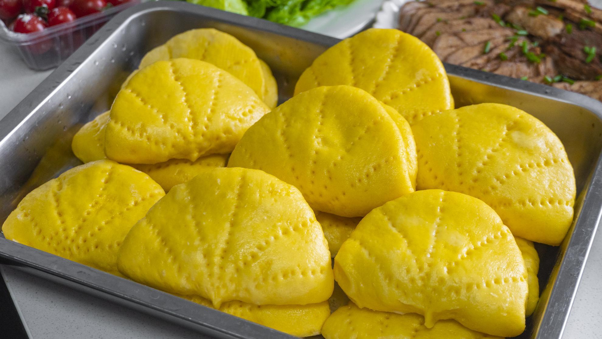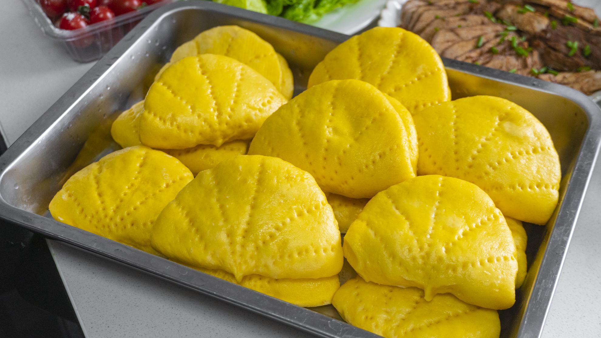 8、關火燜個3分鐘再出鍋,蒸熟後的荷葉餅是很軟的,捏一下就能馬上還原,非常的暄軟。