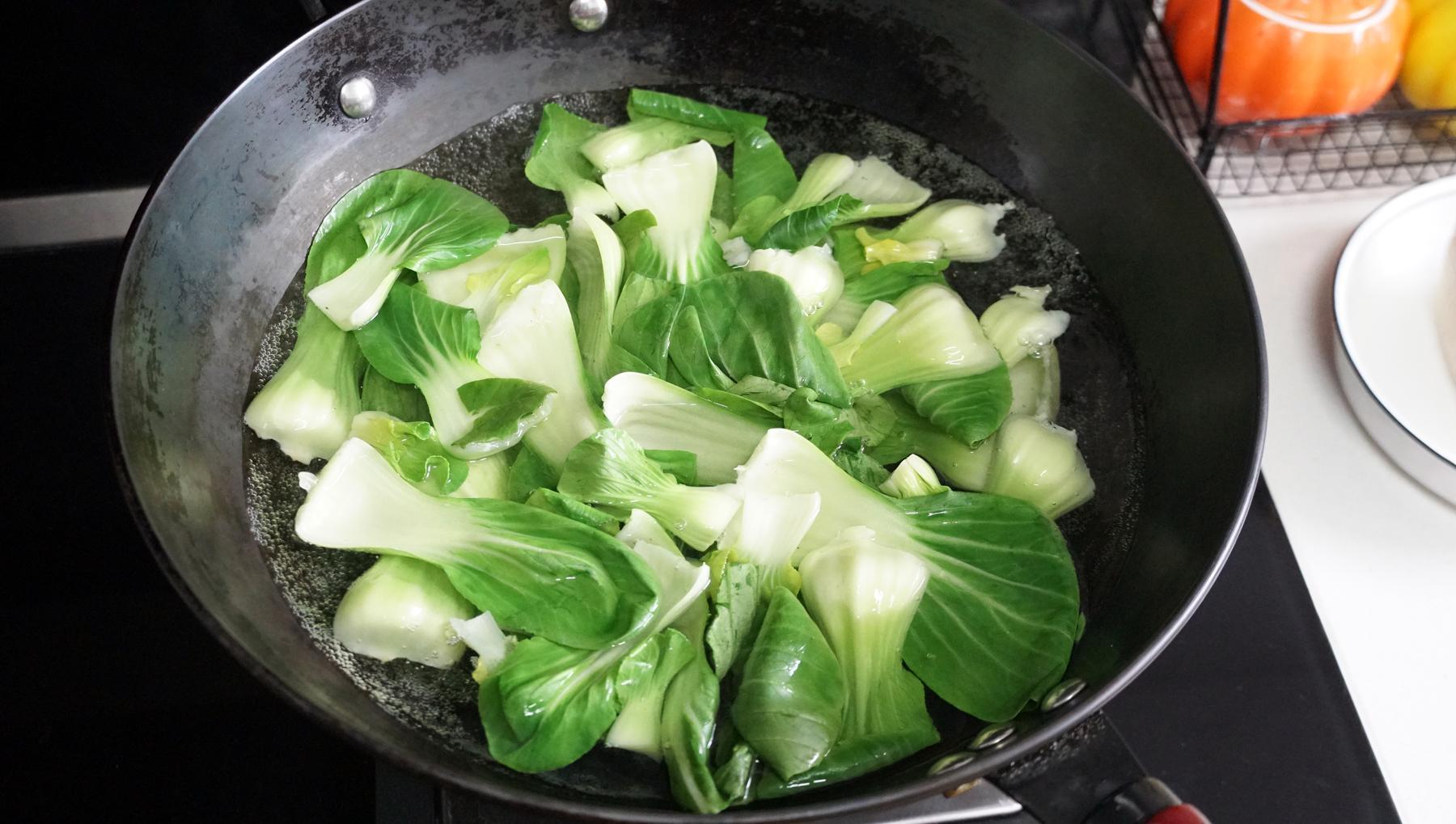 1、雞蛋糕的話我是用了一點小油菜,做了一個蔬菜版本的,先把蔬菜焯一下水,然後切小一點,不喜歡喫小油菜的就用其他的菜,像菠菜、空心菜這些都可以;