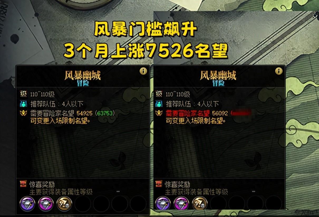 從1.11到4.11剛好3個月時間,風暴門檻從48566上漲到56092名望,整整提升了7526名望!