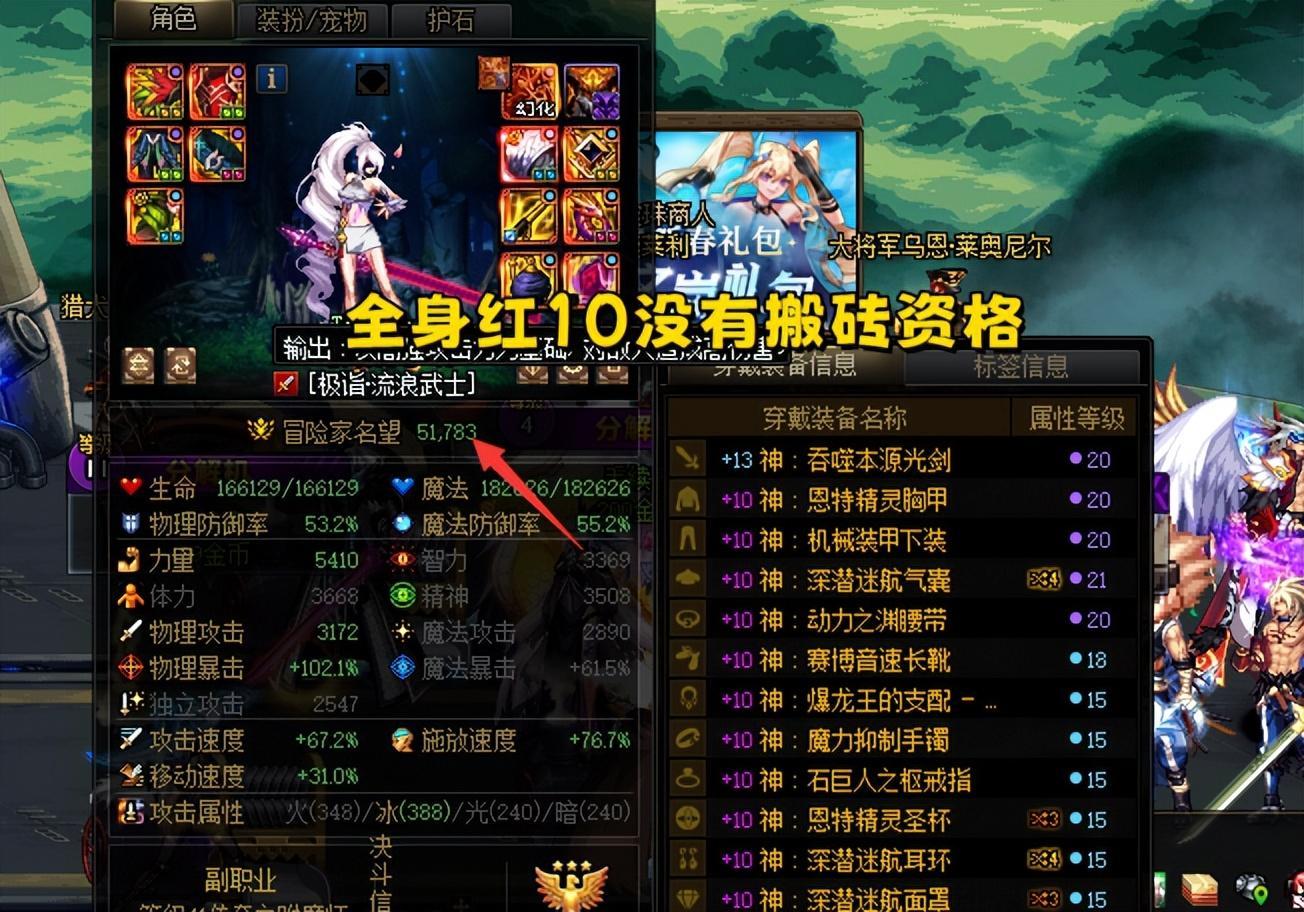 很多玩家全身紅10才能達到5.6名望,意味着打造一個搬磚角色的成本增高,但是搬磚一天才賺不到200w金幣,這點兒收入還不夠網費呢,所以現在已經很少有普通玩家搬磚了。