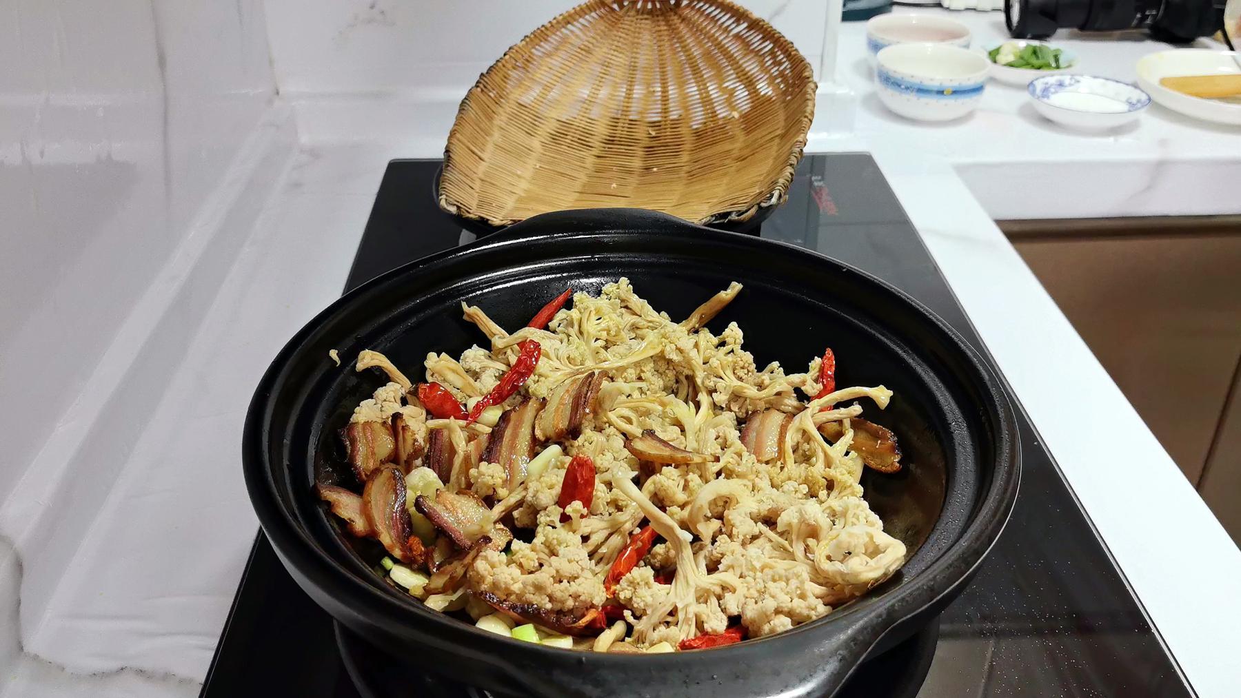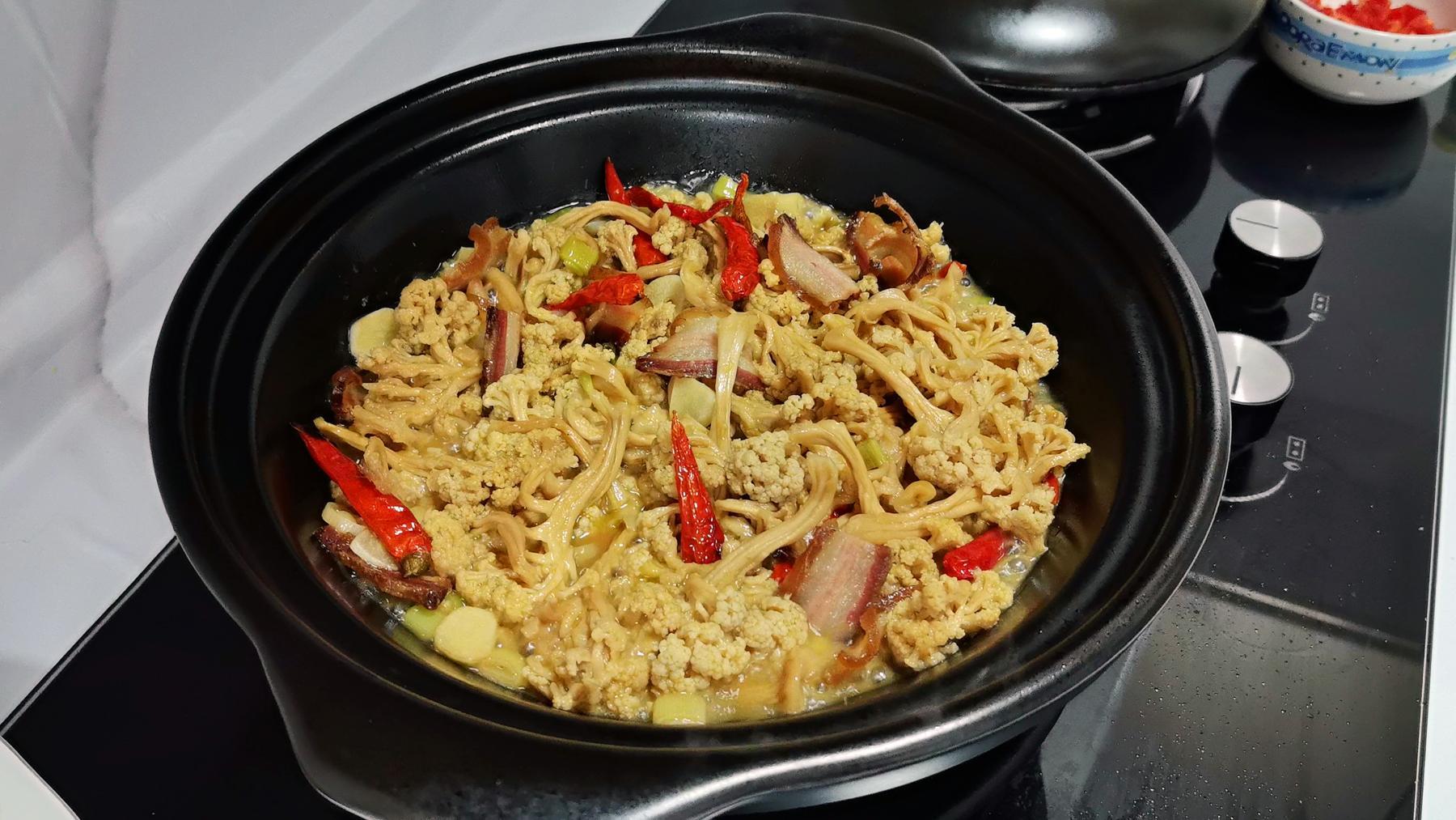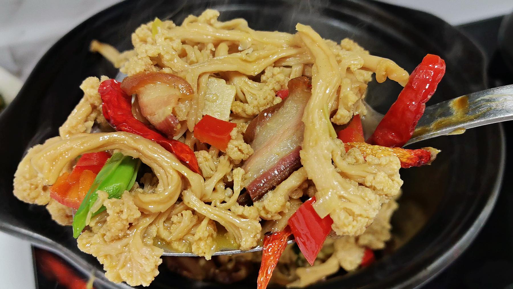 這個乾花菜的味道和鮮花菜的味道完全不同,很有嚼勁,香味更濃,和臘肉搭配着炒,下飯是一絕;