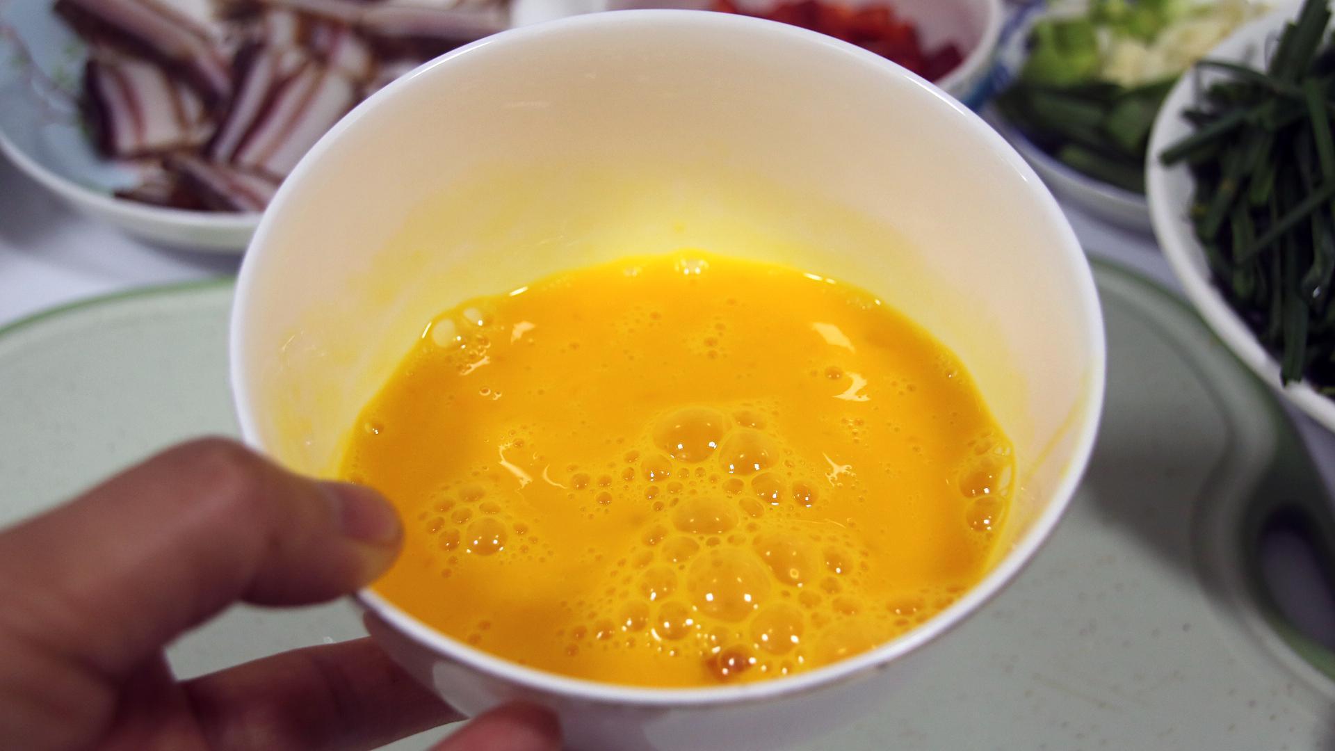 3、準備3個雞蛋,加幾滴白醋,少許食鹽攪散;