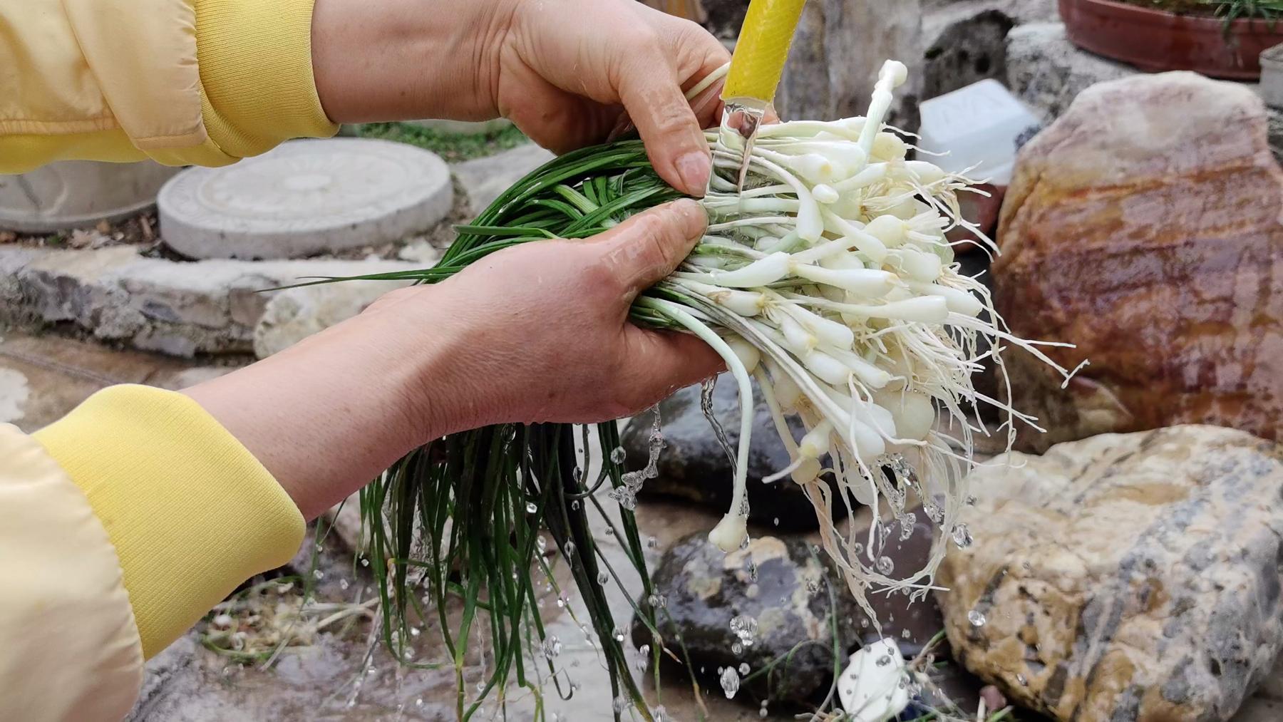 野韭菜,聽起來就充滿了野性的魅力,野韭菜外形比人工種植的韭菜更粗壯,食用時間也很短,也就是3-4月份,等到野韭菜花一開,葉子就變味了。