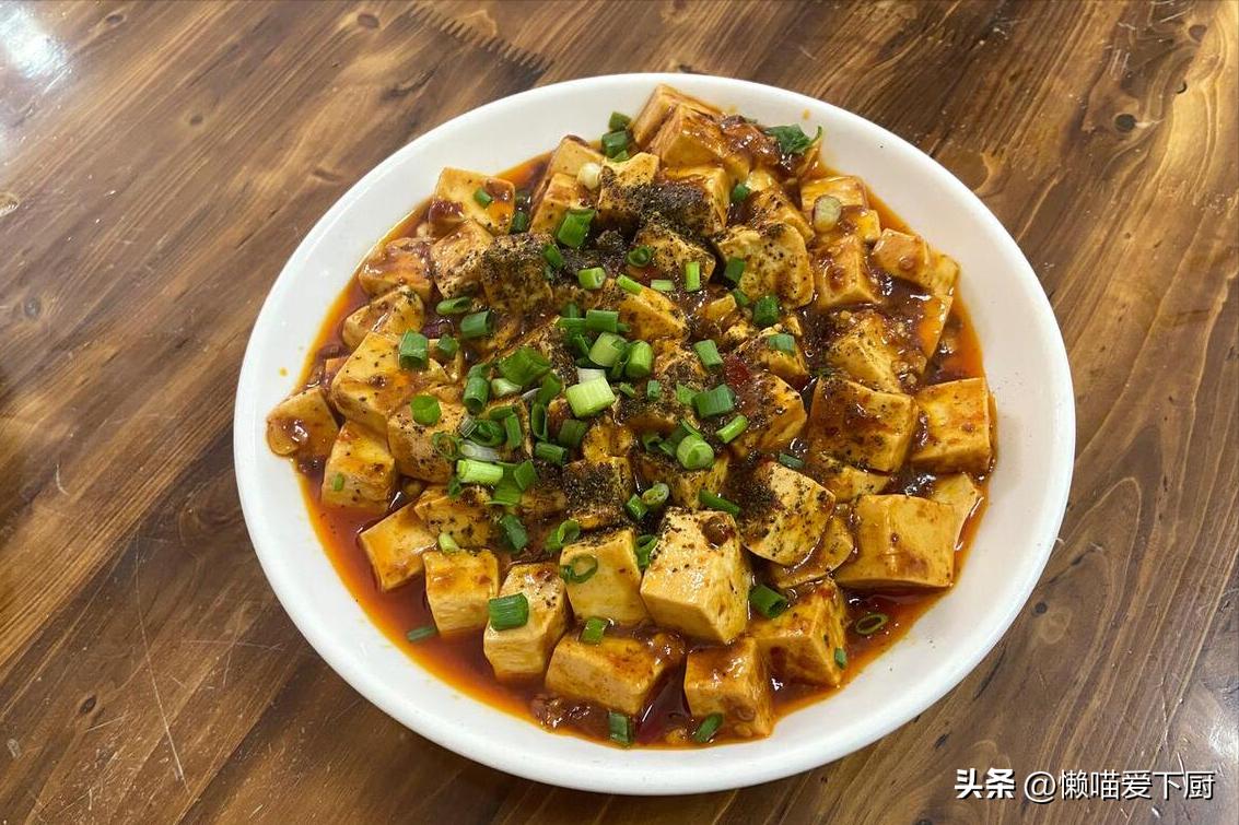 麻婆豆腐:曾被評爲川菜十大名菜之一,將寡淡的豆腐做出了不一樣的口感。這道菜主打麻辣,麻味來自花椒,辣味來自辣椒麪,還會配上蒜苗、肉末增香,可謂色香味俱全。