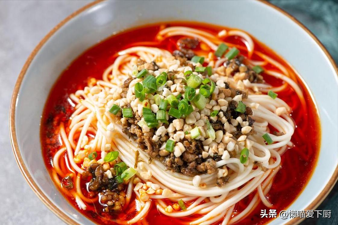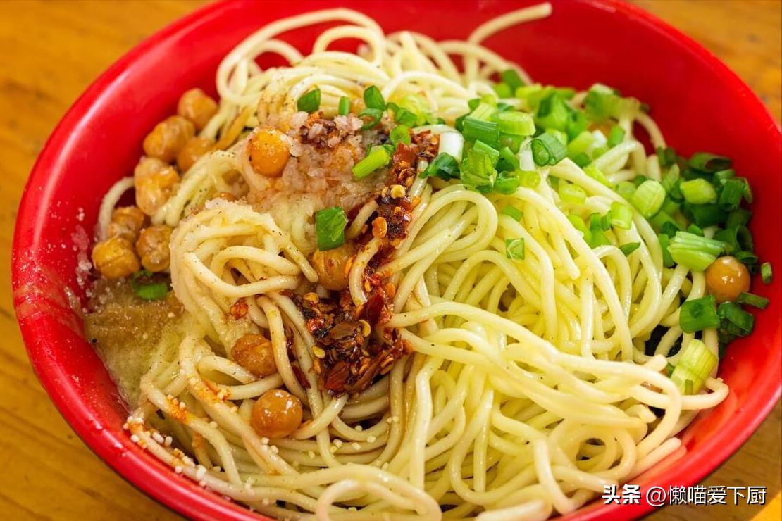 擔擔麪:也屬於涼麪裏的一種,之所以叫“擔擔麪”,是因爲最初這種麪條是被人們挑在肩膀上沿街售賣的。