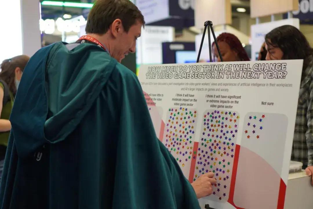 在前不久舉行的GDC 2024會場的中心,一個展臺對所有前來參加GDC的從業者提出了這個問題。他們將問題寫在展覽板上讓路過的從業者用貼紙投票,得到的答案顯而易見: