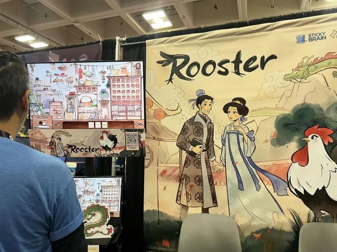 比較讓我意外的是一款由老外製作的中國故事背景的遊戲。遊戲的名字叫做Rooster,因爲畫風和玩法十分吸睛,前去體驗的人圍成了一圈。我在現場恰好和遊戲的動畫導演聊了聊,她告訴我由於團隊十分喜愛中國文化,決定把十二生肖的故事做成遊戲,遊戲裏主角會隨着探索十二生肖的故事長大、結婚、變老。