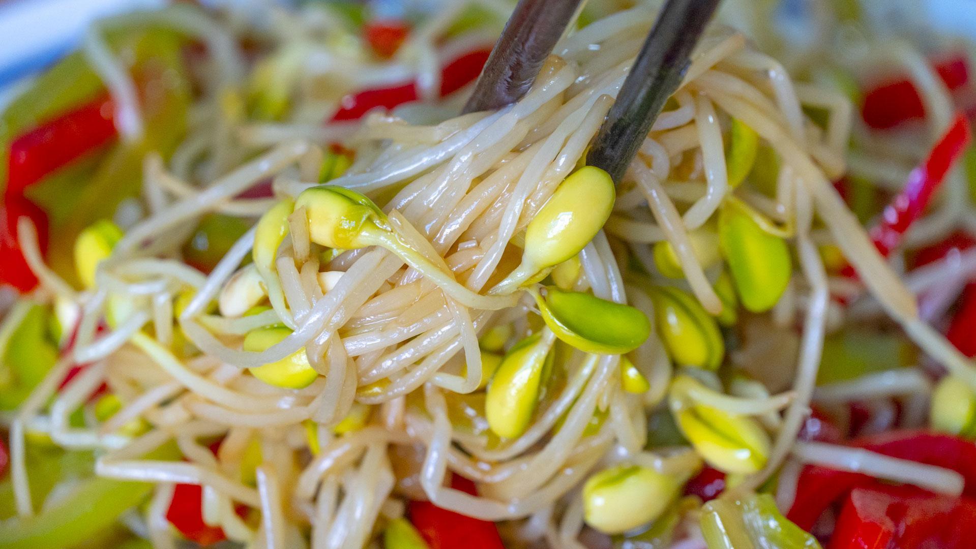 1、新鮮的黃豆芽脆脆的嫩嫩的,取出來先剪掉根部,然後清洗一遍就可以開喫了。
