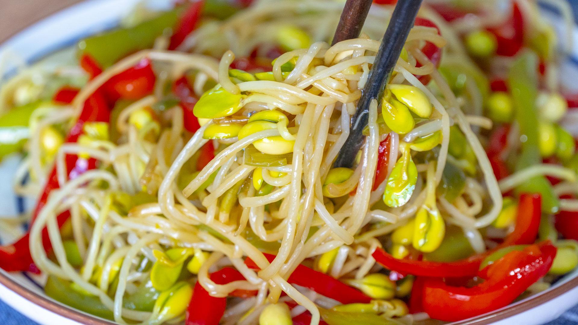 食材:黃豆100克、青紅辣椒、鹽、生抽、蠔油、白醋