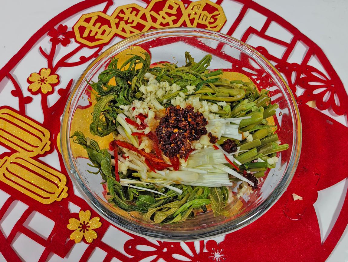 食材:香椿、蔥絲、辣椒絲、大蒜