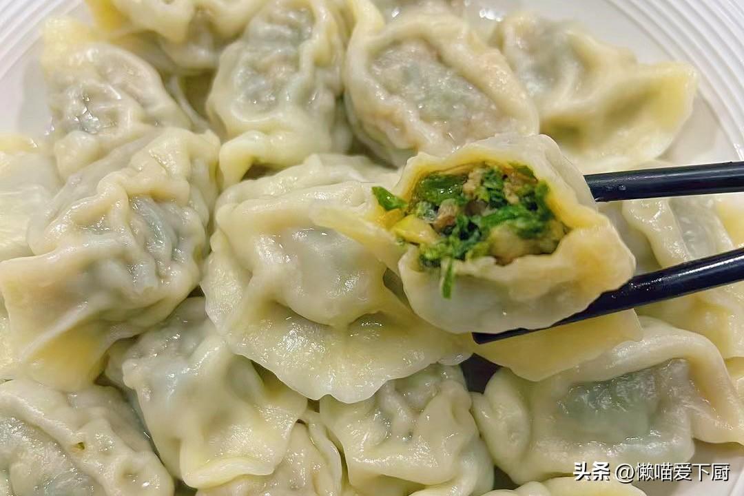 4、準備些現成的餃子皮,包裹入調好的薺菜餡,下鍋煮熟即可。