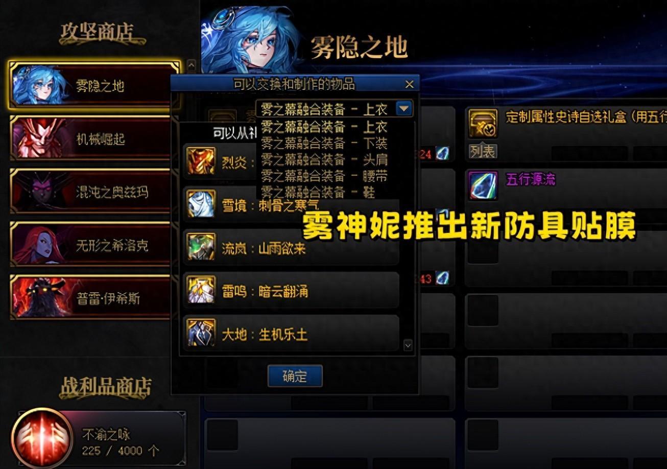 由於“霧神妮”帶來了全新更強的防具貼膜,所以防具的貼膜需要換成“烈炎5件套”或“大地5件套”;