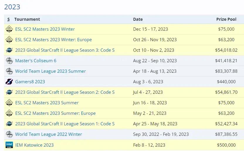 然而,《星際爭霸2》國服停運後的整個2023年,該遊戲的最高等級賽事——Premier級比賽一共僅僅舉辦了12場,遠低於往年的賽事數量。