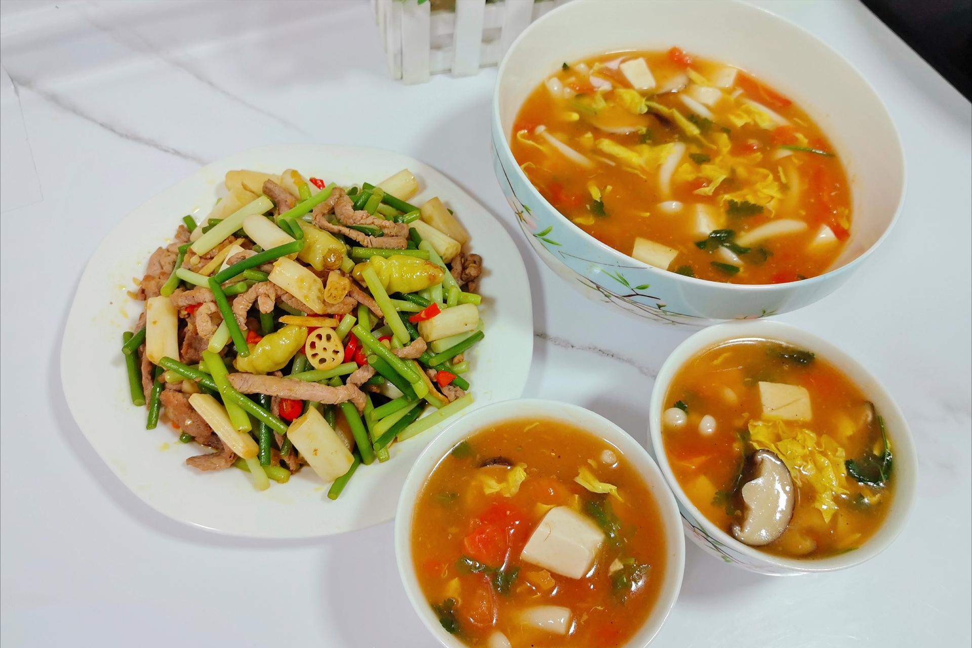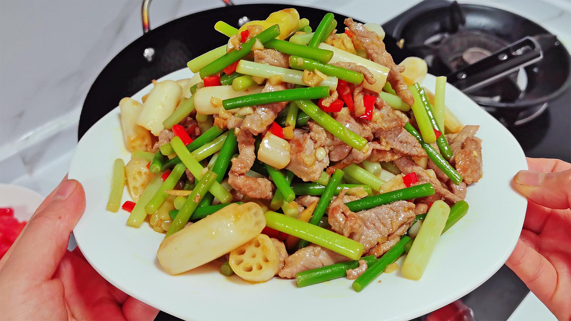 今天午餐炒了一個蒜薹炒肉絲,裏面是加了一點藕帶,藕帶就是自帶的那種酸辣脆爽,配上油而不膩的肉絲,特別的好喫下飯;