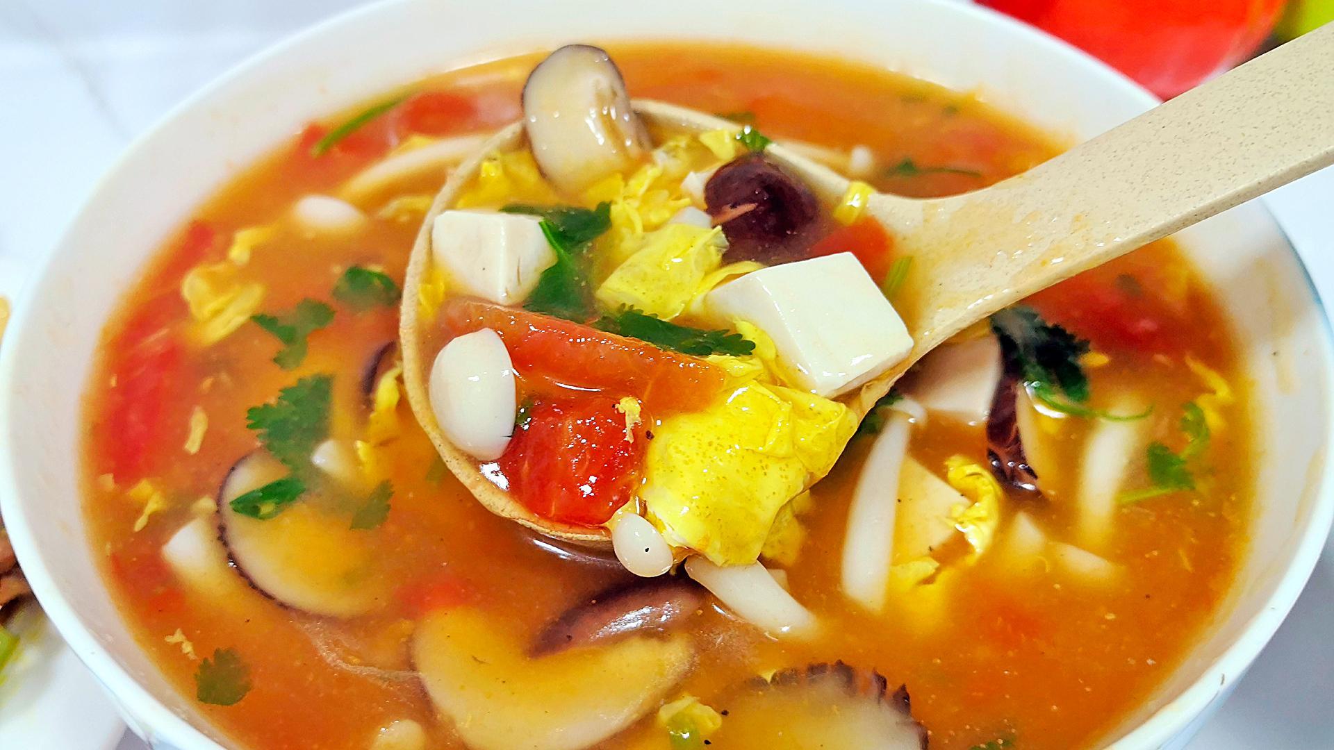 我還搭配了一個番茄豆腐湯,是清淡的 ,微微的酸味加上食材的鮮味,特別好喝,做法也簡單;