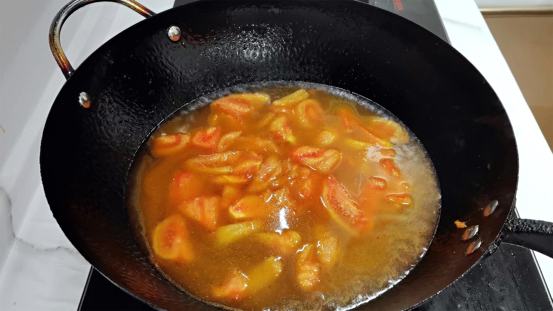 1、油熱倒入西紅柿,加少許鹽,炒出汁兒加入一大碗清水;