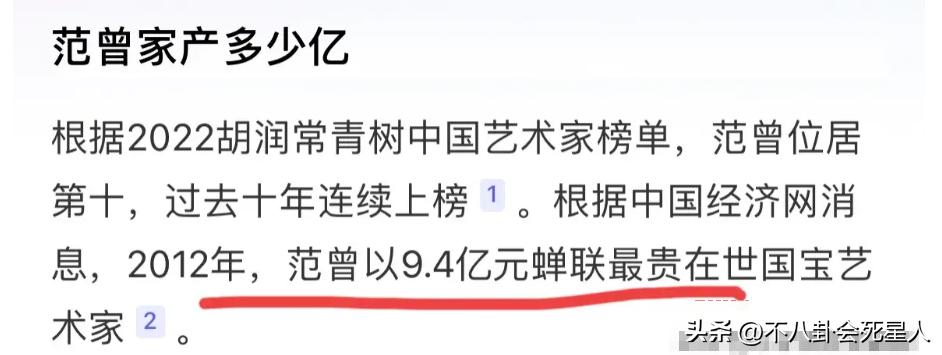 範曾雖然已經86歲了,但他的藝術才華很高,畫作最高可以賣出上千萬,他的身家也高達9.4億元,妥妥的富豪。