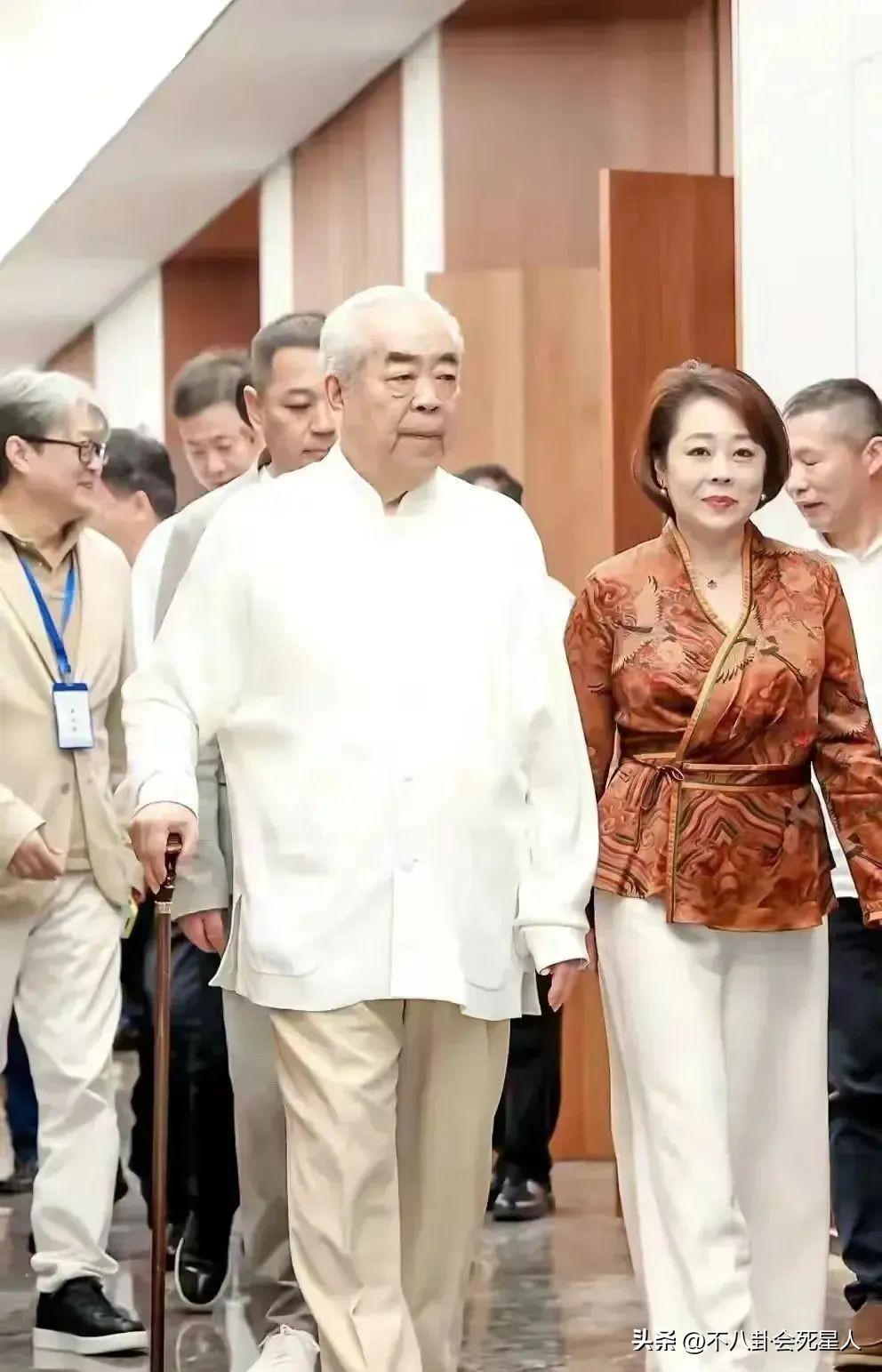 對比之下,範曾一頭稀疏的白髮顯得很蒼老,兩人畢竟差距了50歲,從外表看年齡差距還是很明顯的。
