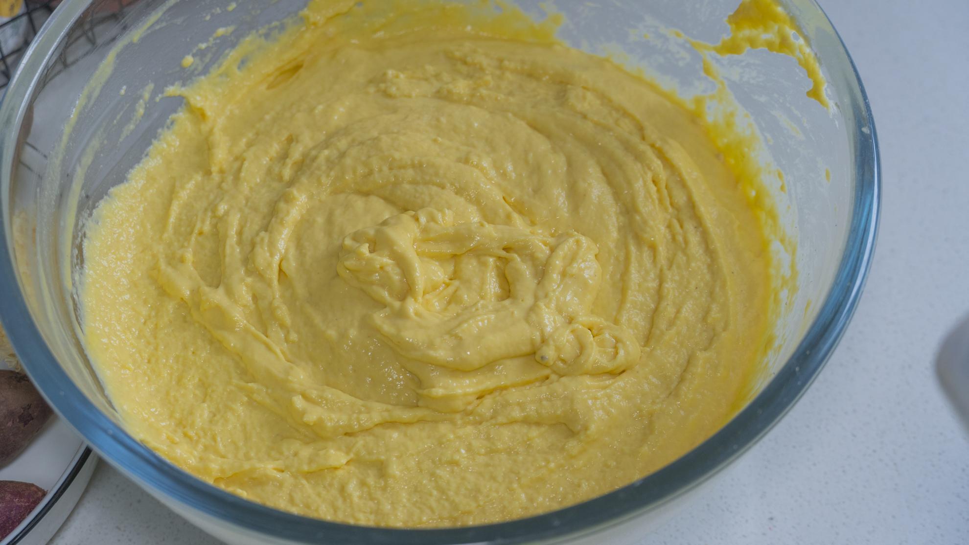 2、攪拌一下,給它排排氣,這一步是不能少的,不然蒸出來就很容易塌陷的。