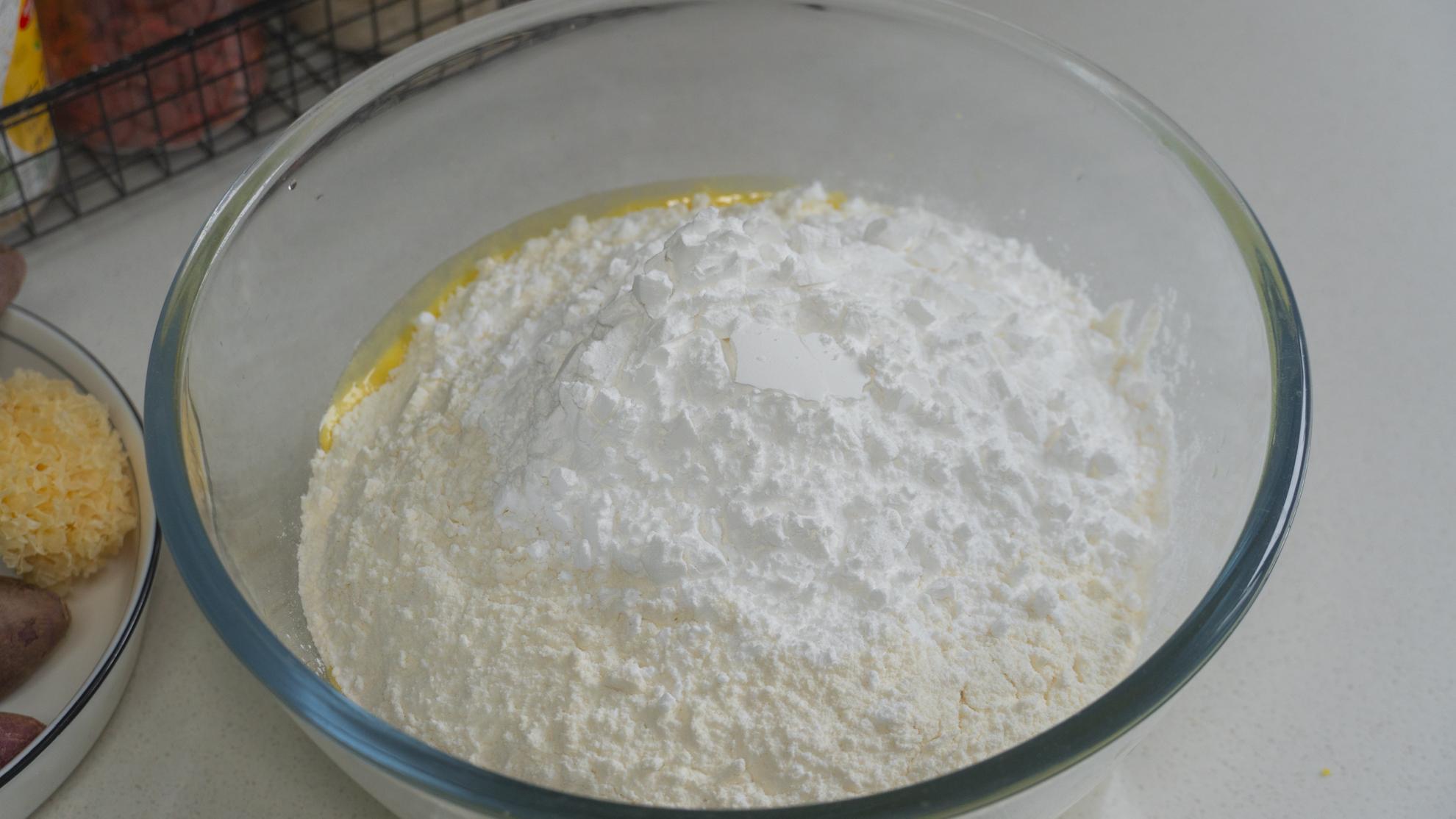 1、酵母我加了5克,然後加了400克麪粉,100克的木薯粉,個人覺得木薯粉真的不能加多,主要就是增加一點Q彈度,加多了口感反而會變硬。