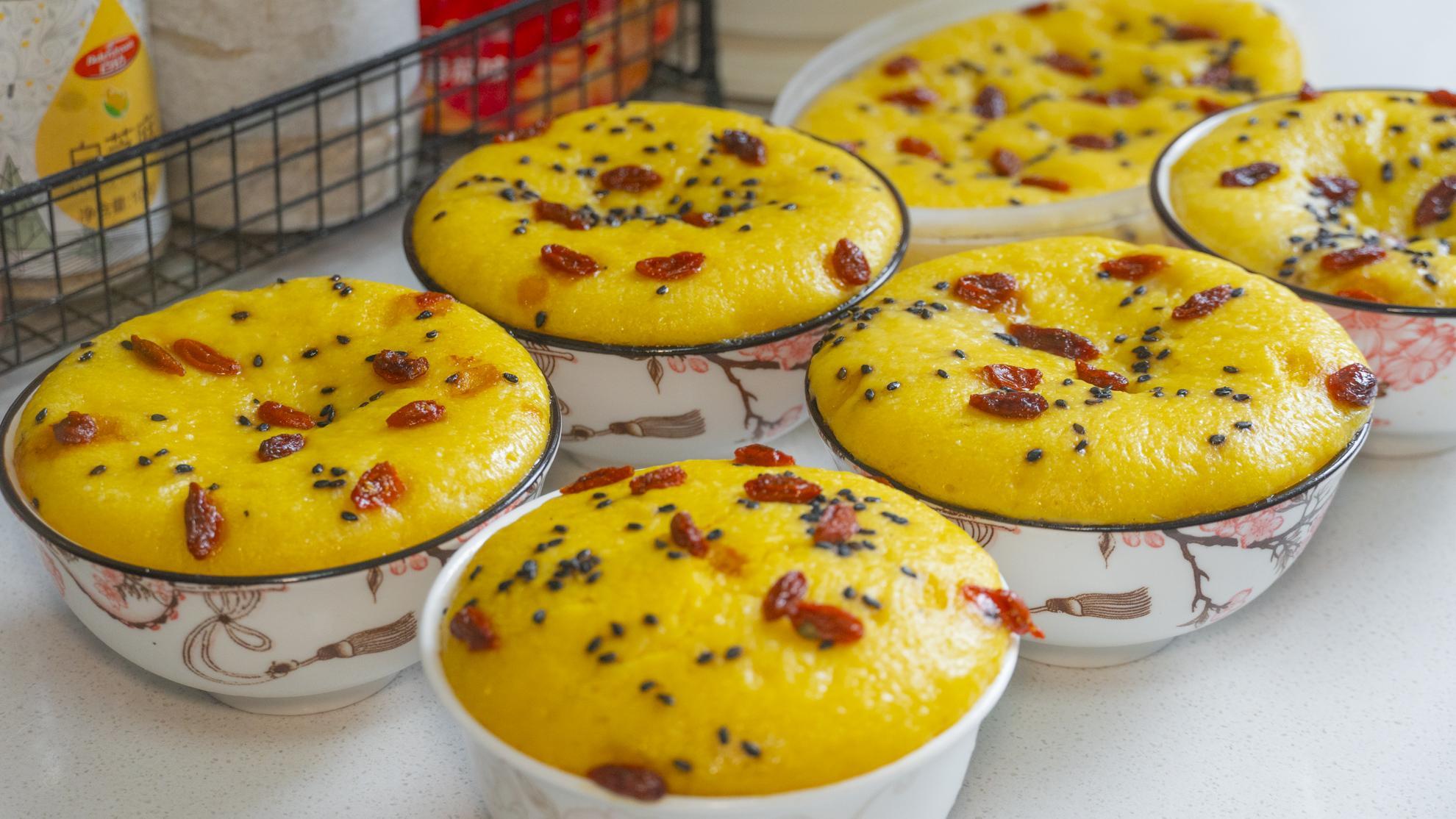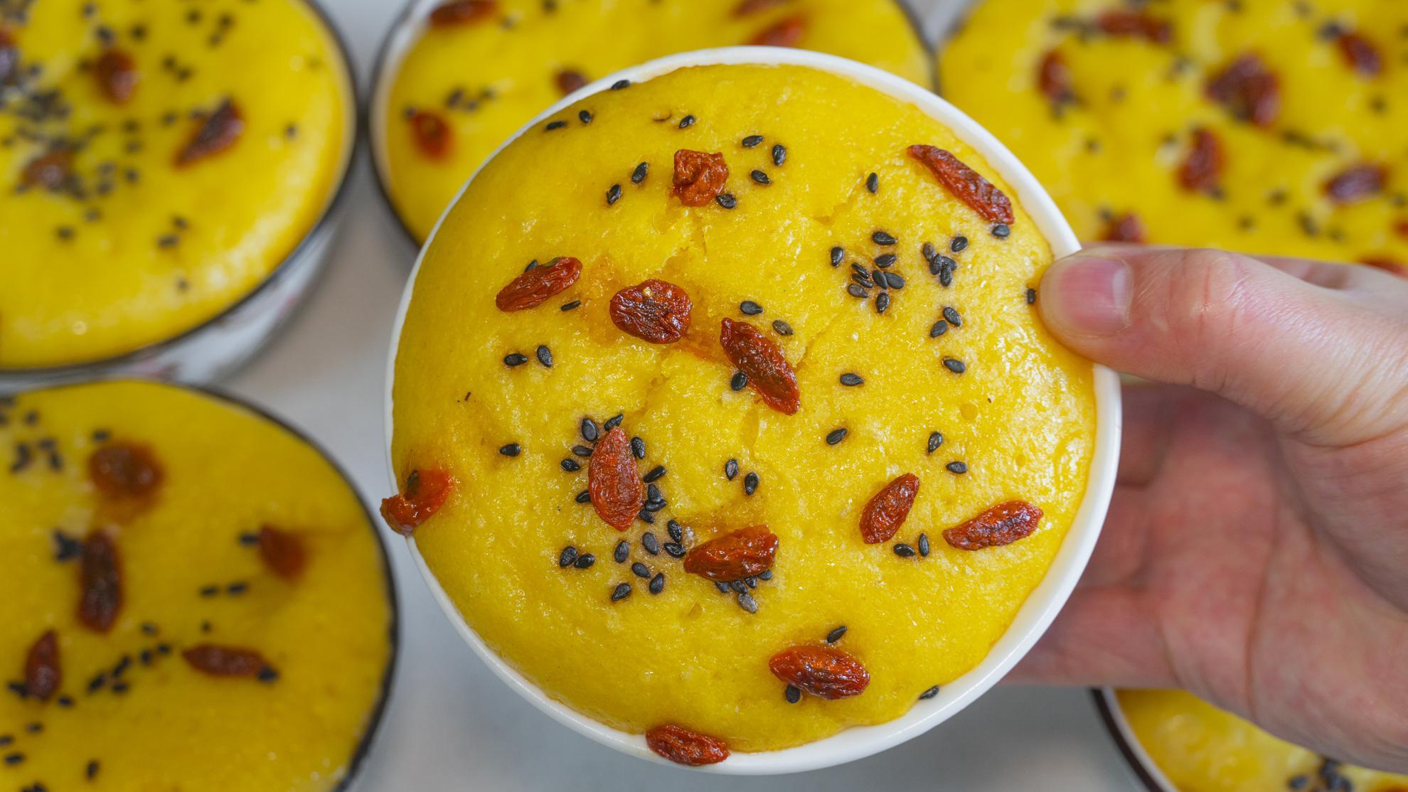 今天來是用了一點小米和南瓜做的發糕,出來顏色還是蠻漂亮的,也是同樣可以當預備早餐的,早上起來蒸一下就能喫,非常簡單的,而且還能健脾養胃。