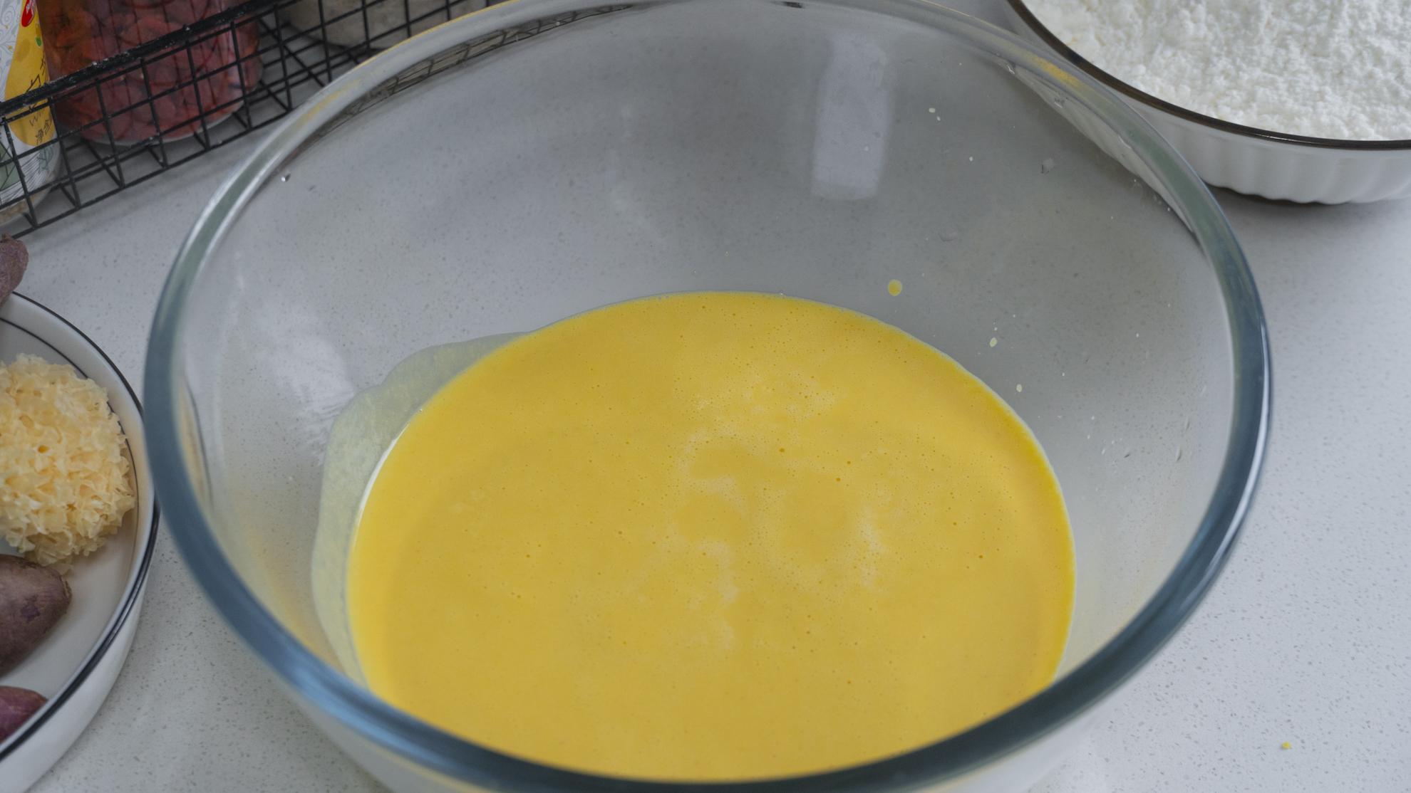 4、然後攪打兩遍,打細膩一點這樣小米的口感喫起來就會細膩的,倒出來後就可以調麪糊了。