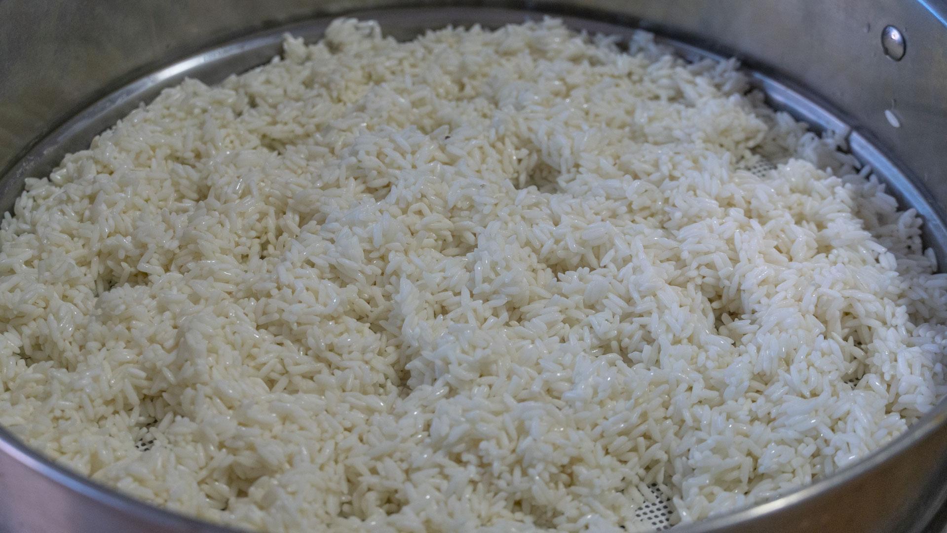 4、糯米飯蒸熟後先用筷子挑散,然後倒入碗裏。