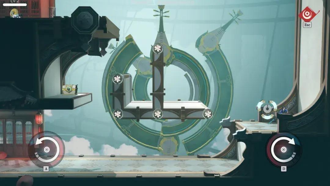 遊戲整體的關卡設計算不上覆雜,但對於移動端遊戲而言,其可交互性和玩法深度完全算得上能讓輕度玩家體驗到很強的新鮮感了。在一趟主線任務的關卡里,玩家會體驗到非常經典的機關旋轉解謎、鉤鎖點平臺跳躍等等內容。關卡之間有着非常鮮明的主題和美術風格區隔,始終能營造視覺上的新鮮感。