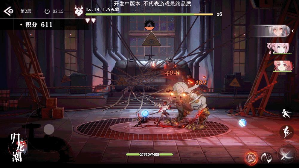 與此同時,遊戲的戰鬥系統本身也承接了這種“保持經典味道、內容更爲輕度”的設計思路。相比單機銀河城遊戲往往有複雜的位移交互,《歸龍潮》在戰鬥方面更接近清版動作遊戲的爽快感:單個角色只有普攻、技能和大招(終結技能)三種攻擊方式,學習成本幾乎爲零,只要在角色切換間哐哐把技能往怪臉上甩就好。