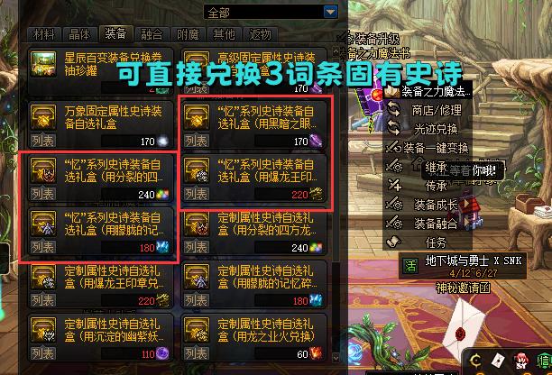 【14】SNK聯動小遊戲,參與活動可獲得跨界石、裝扮合成器、3詞條固有史詩等,比較適合小號參與。