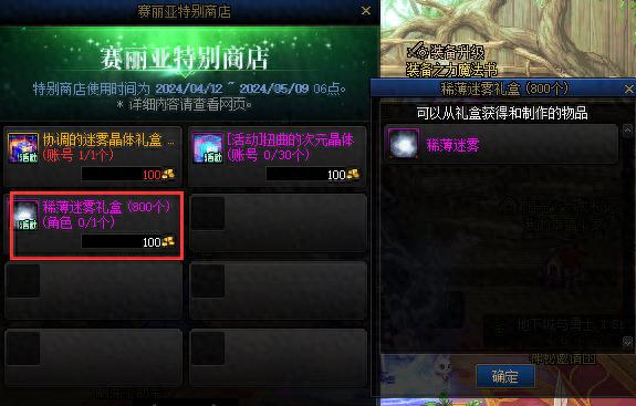 【1】賽麗亞特別商店,新增了道具800個迷霧,可用100金幣兌換,聊勝於無。