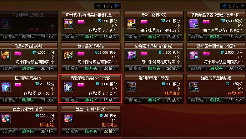 積分可兌換閃耀跨界石、次元晶體、鎖2晶體等,其中“鎖2晶體”算比較重要的,每週可兌換2個,自定義還沒畢業的兄弟可以留意。