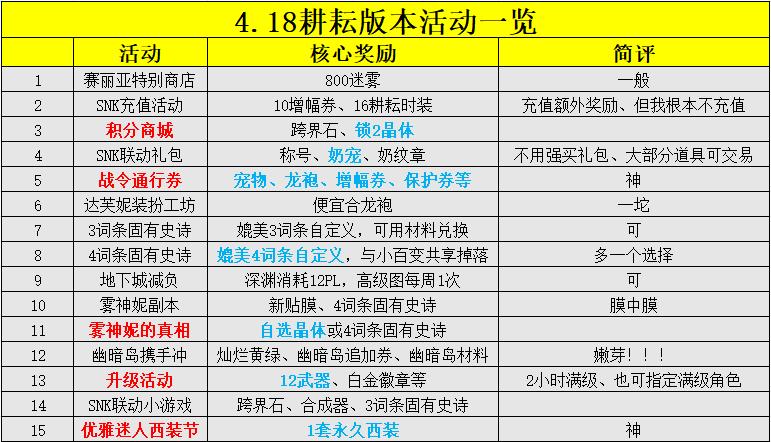 “五一版本”指的是4.18更新後的版本,包括耕耘禮包在內的各種活動和改動實在太多了,但很顯然並不是所有活動都值得參與,這裏咱們主要詳解一下核心內容和獎勵!