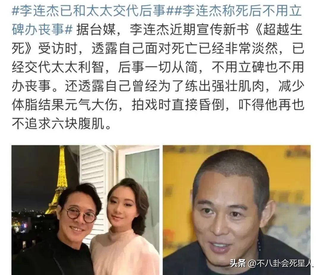 61歲的李連杰去年公開表示已經和太太交代後事,不用立碑不用辦喪事,一切從簡。而他本人患甲亢已有10年,這10年雖然一直有喫藥控制病情,但他的心臟還是會受影響,導致他不能做激烈活動。