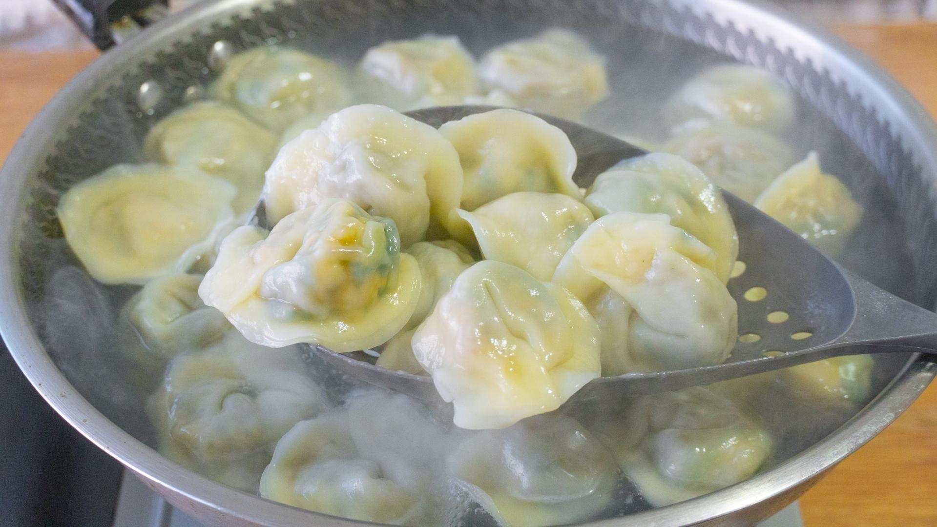 煮到餃子全部都飄起來後就可以撈出來了,香噴噴的茼蒿餃子就做好了!