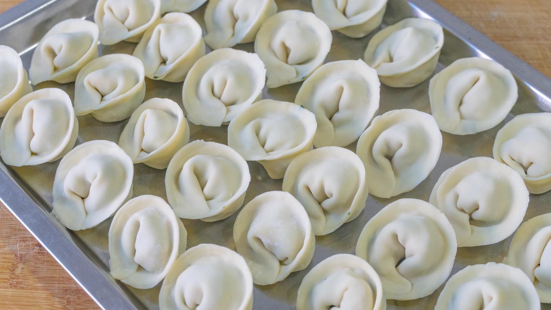 7、全部包好後喫不完的可以裝起來冷凍保存,下次喫的時候直接煮就行。