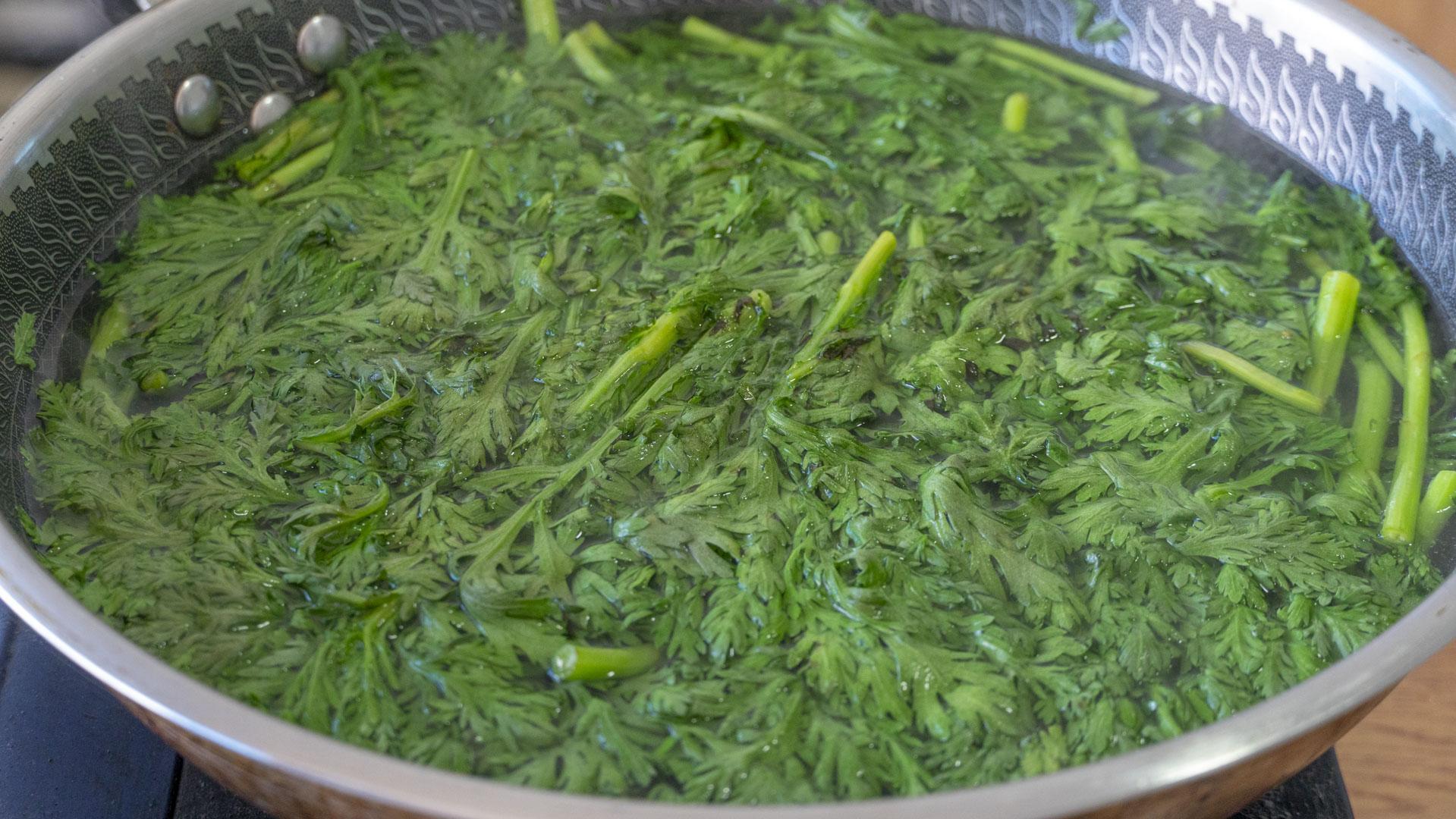 食材:茼蒿、大蒜、食用油、鹽、味極鮮