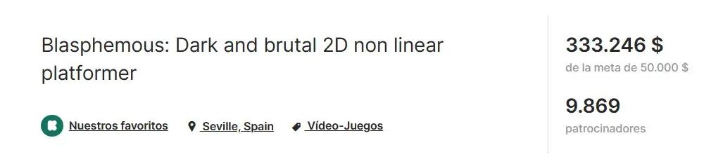 2017年,由Game Kitchen工作室開發製作的類銀河惡魔城遊戲《神之褻瀆》上架了衆籌平臺Kickstarter。憑藉着出色的美術風格以及背景設定,本作在開啓衆籌後立馬突破5萬美元的目標,並在衆籌結束時獲得超過30萬美元的支持,一舉成爲當時Kickstarter平臺最成功的西班牙語遊戲項目。