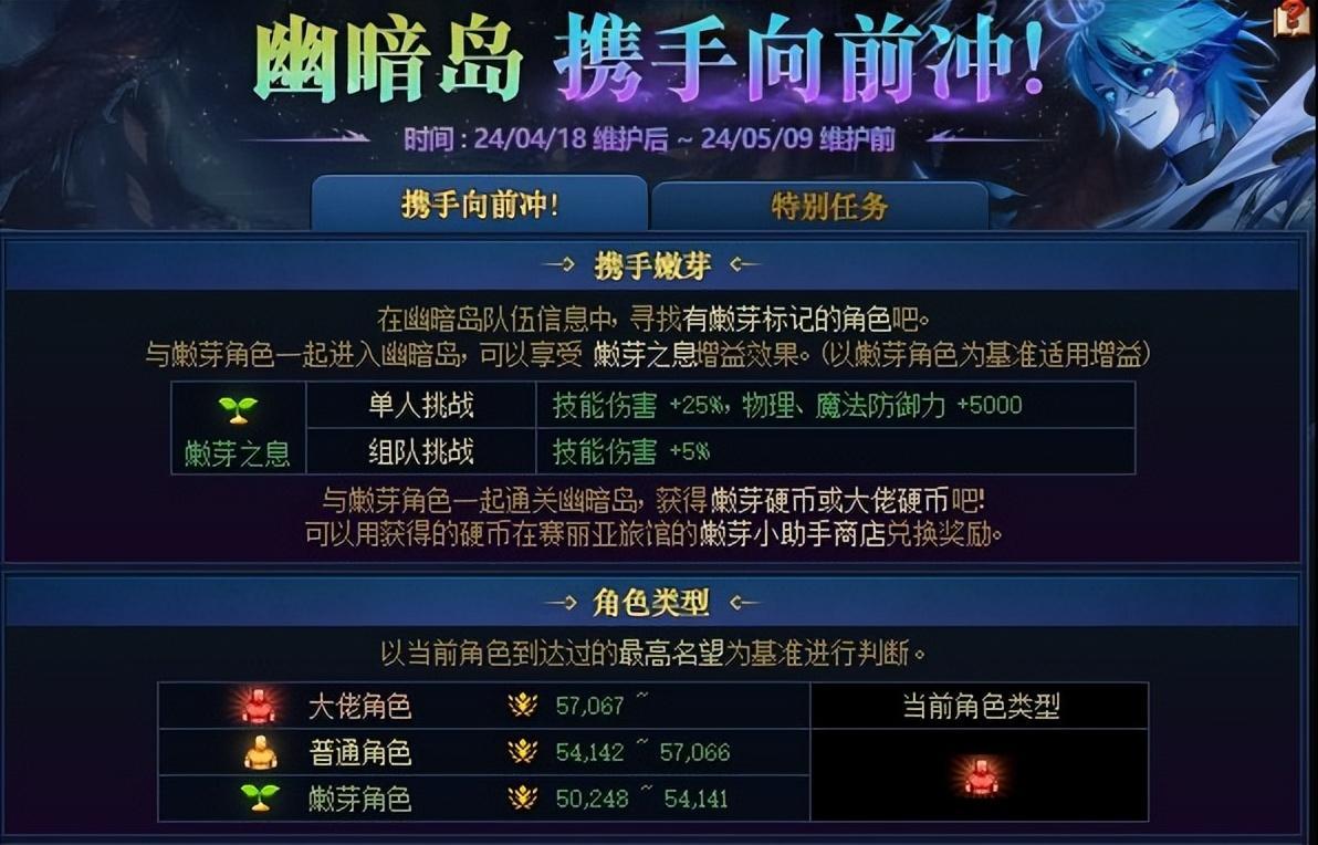 另一個是“嫩芽活動”,新角色升到50248名望之後,就可以進入幽暗島當一個快樂的小嫩芽了,雖然每次吐槽嫩芽聲音都很多,都依舊有很多大佬願意免費帶。