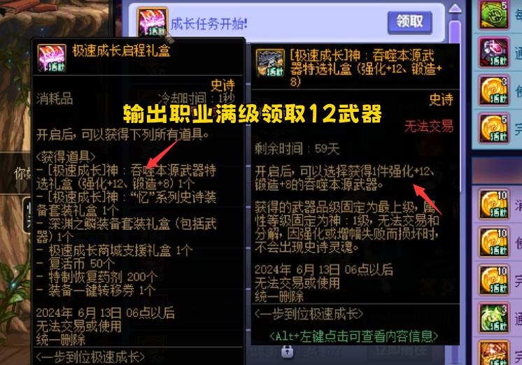 值得一提的是,這把禮盒可以選擇其他職業武器,也可以跨界,也就是說可以用小號領取大號所需要的武器,然後進行強化,成功了就可以跨界給大號。
