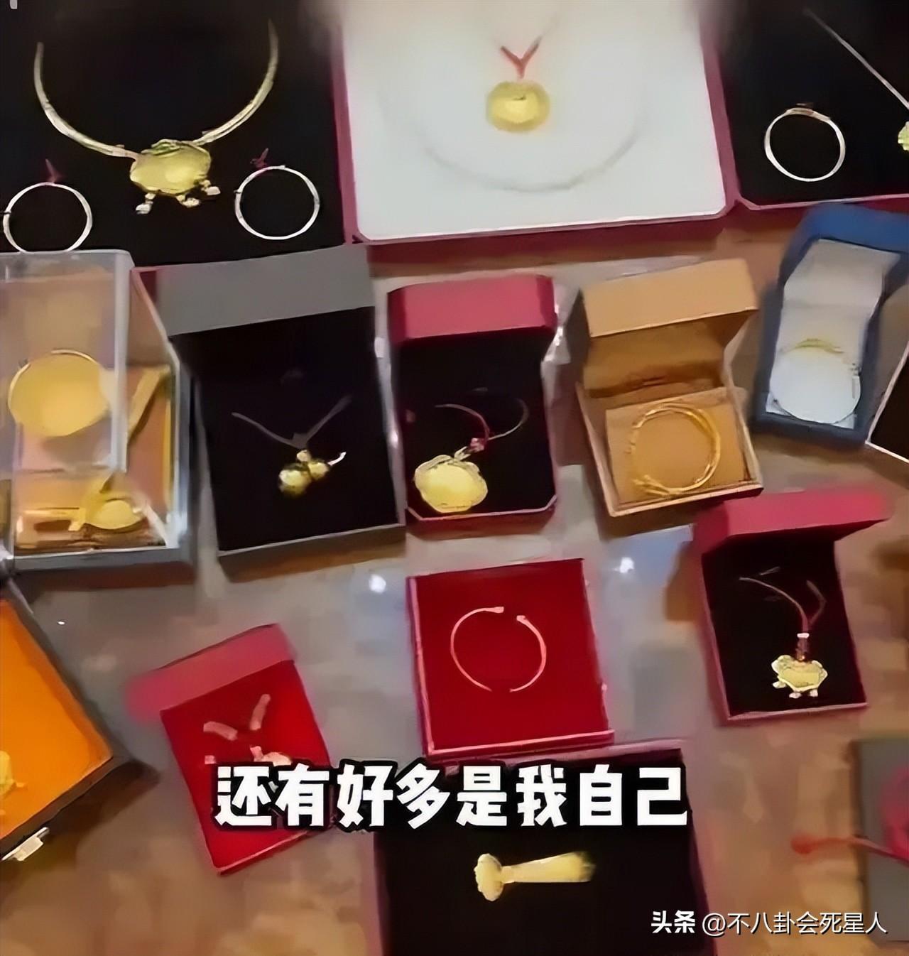 之前球球也曬過,她和家人親戚送了很多金器給“皮兒”,其中趙本山夫婦就打造了一套金碗筷給外孫,這一堆金器價值近10萬。