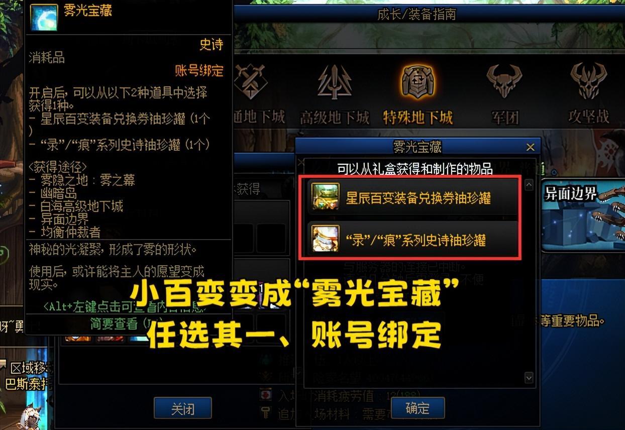 這裏最重要的改動在於,“霧光寶藏”是賬號綁定的,如果小號爆出來了,可以拿給大號優先畢業!