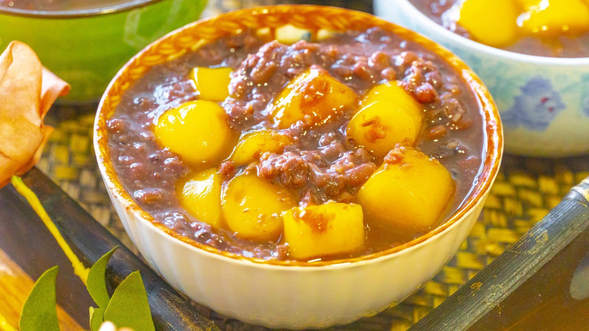 10、再把南瓜芋圓放上來,好喫的赤小豆南瓜粥就做好了。
