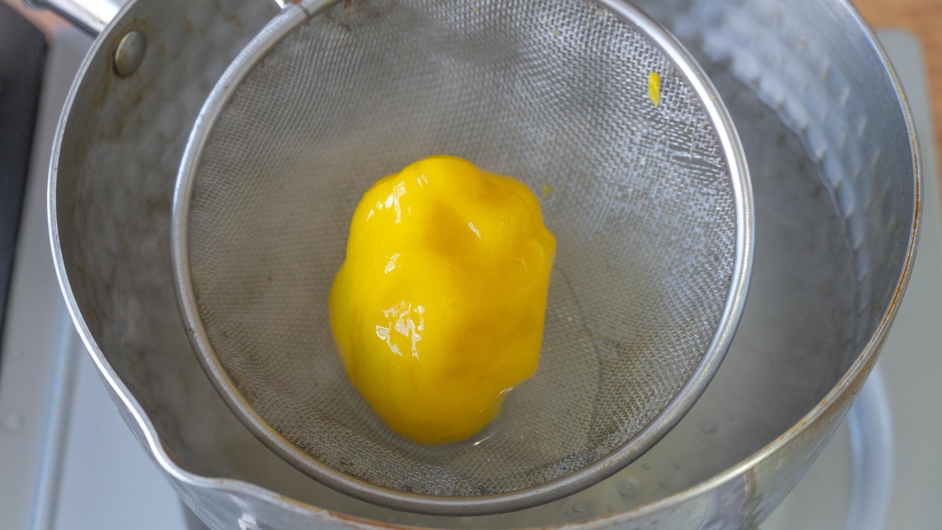1、黃皮洗淨後在黃皮果的表面劃十字倒扣,接着擠出裏面的核。