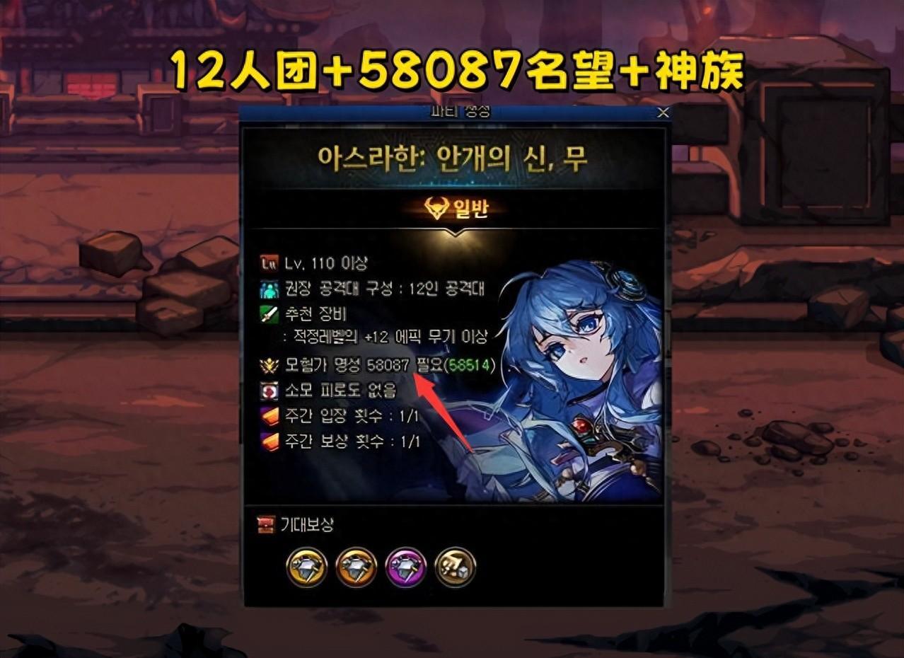 首先是“霧神”基礎介紹,12人團本,入場名望爲58087,boss最終階段爲“神族”!