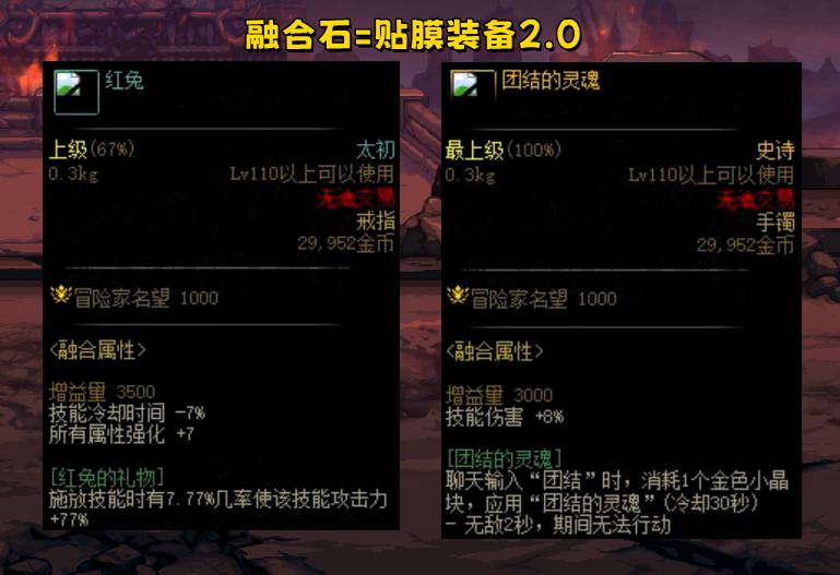 如果說“貼膜裝備”是在裝備上貼了一層膜,那麼“融合石”就是在裝備上打了一個洞,性質都是差不多的。
